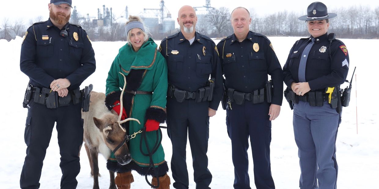 Over 100 Law Enforcement Agencies joined us for our end-of-the-year Hand Off event on 12/2/25 (pictured - Mauston PD w/ Wisconsin State Patrol take a quick pic at the Hand Off event with Jilane and her reindeer friend)